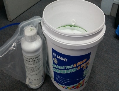 1. ضع شريط الوصل أسفل الحافة، ثم ضع الغراء على الشريط (الجانب لأعلى) وظهر موضع الوصل للعشب الصناعي. يجب وضع الغراء بالتساوي وبشكل متوسط. انتظر حتى يجف الغراء بنسبة 80% -90% ويصبح غير لاصق، ثم اضغط على حافة لفافة العشب بقوة حتى يلتصق.