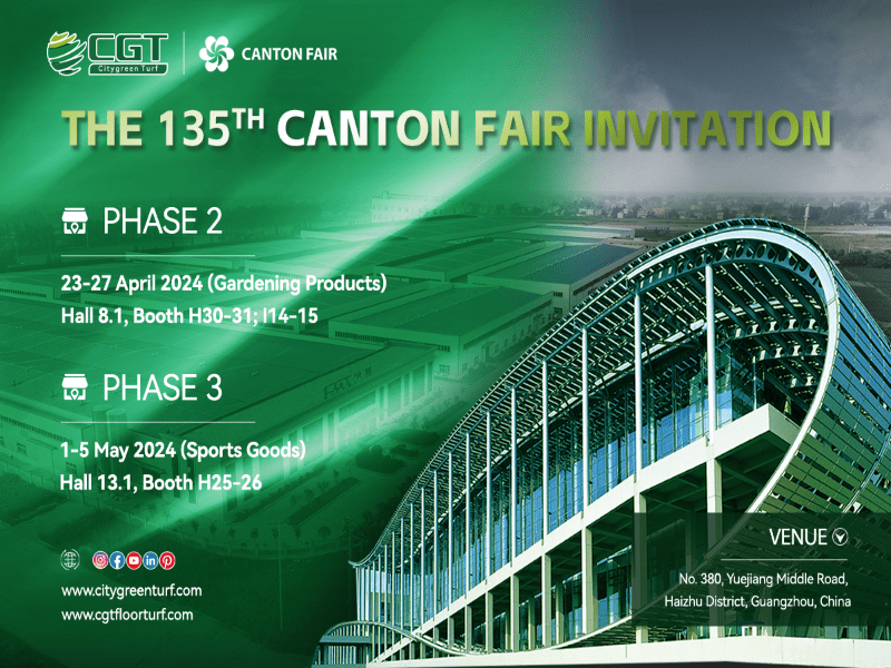 إذا كنت بحاجة إلى عشب كرة القدم أو عشب الترفيه أو أرضيات الرياضة أو ملاعب البادل أو العشب الصديق للبيئة أو أي عشب صناعي متعدد الوظائف، فنحن ندعوك أنت وشركتك بصدق لزيارة جناحنا في معرض كانتون. أقيم معرض الاستيراد والتصدير الصيني رقم 135، المعروف أيضًا باسم معرض كانتون، عبر الإنترنت وخارجه في مدينة قوانغتشو بمقاطعة قوانغدونغ من 15 أبريل إلى 5 مايو 2024. وهو أقدم وأكبر وأكثر المعارض التجارية تمثيلاً في الصين.