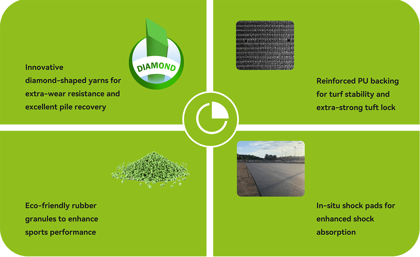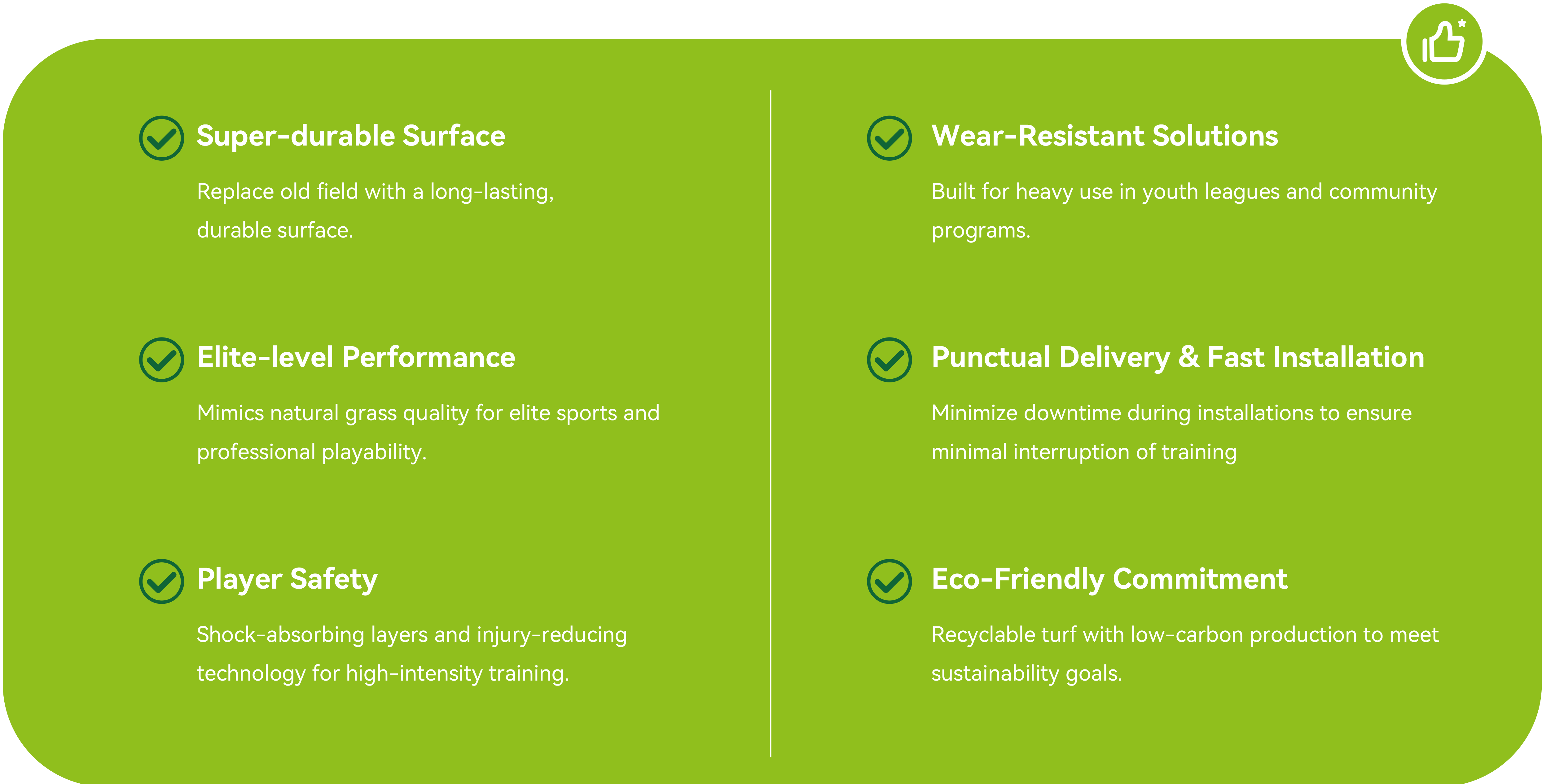 معايير عالية: أداء رياضي على مستوى النخبة → يتطلب عشبًا مطابقًا لأفضل ملاعب العشب الطبيعي